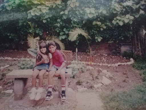 | Reinier, hijo de Adriana junto a Yaíma, vecina, en el patio de La Mansión Oriental, ahora ocupado por otras casas |