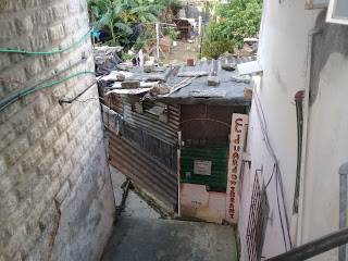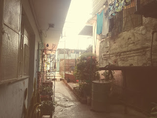 La “Mansión Oriental” se despierta empolvada, llena de humedades y grietas cambiantes. Esquinas repletas de trastos que a ratos recuerdan la elegancia de antaño. Paredes llenas de carteles como recordatorio de los amores, fracasos y credos de sus habitantes: “no sé perdonar”; “Si te molesta lo que yo tengo, trabaja”. Huecos disimulados con cualquier trozo de algo. Cables colgando. Tendederas improvisadas en los pasillos.