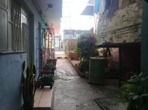 Pasillo trasero donde se pueden ver las plantas de Adriana
