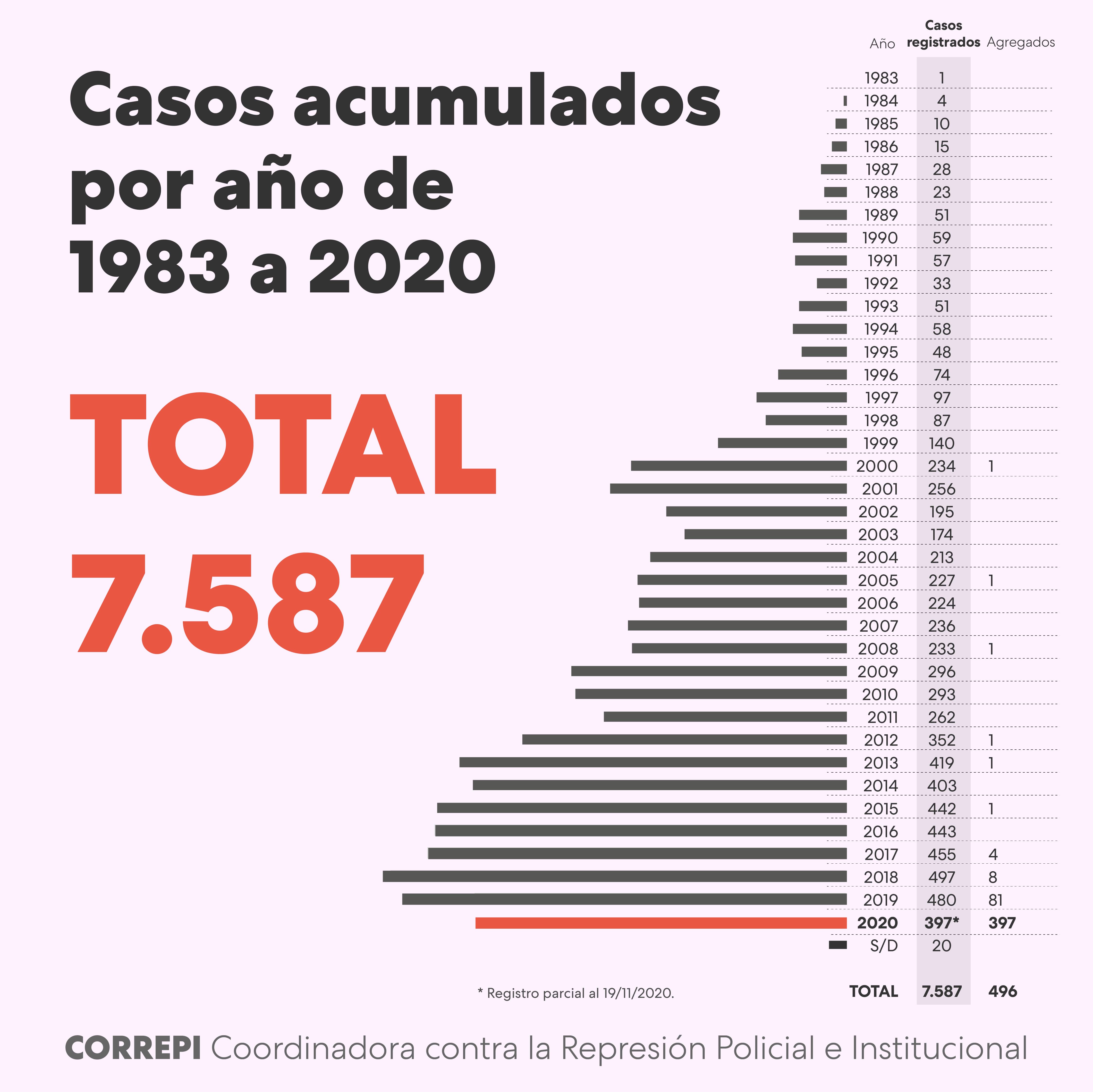 En esta 25ª actualización, incorporamos 496 casos al Archivo, totalizando 7.587 hasta mediados de noviembre de 2020, contra 7.091 que teníamos registrados hace un año.