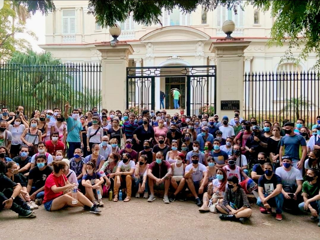 Manifestación de intelectuales cubanos frente al Ministerio de Cultura