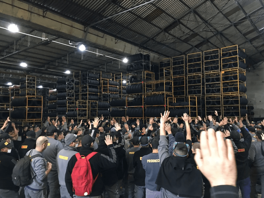 AC: Claro eso es lo que trato de expresar. Nosotros veníamos de una situación vieja con la burocracia donde teníamos paritarias a la baja y las patronales estaban acostumbradas a hacer reinar sus términos en la negociación colectiva. Luego de un proceso de cinco años, porque se extendió uno más por la pandemia, donde todas las negociaciones resultaban en una mejora del salario real de los trabajadores, lo que se intentó de una vez por todas fue quebrar ese proceso de mejoras por medio de derrotar a la dirección del gremio y derrotar a los trabajadores, e implementar nuevamente una situación donde la regla fueran otra vez las negociaciones a la baja. No se estaba jugando una paritaria puntual, acá se estaba jugando el destino de largos años para los trabajadores del neumático. O manteníamos las condiciones donde se respeten la negociación colectiva y los argumentos de los trabajadores, o las patronales volvían a imponer la voluntad unilateral, digamos, de las empresas. Eso fue lo que produjo las 30, en realidad fueron 25, audiencias repitiendo lo mismo después de la conciliación obligatoria, donde las patronales claramente lo que demostraban es que querían una derrota aplastante de los trabajadores.