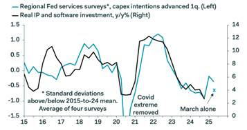 Incluso en el sector de IA, encuestas regionales recientes de la Reserva Federal muestran que las empresas esperan recortar el gasto en TI y en capital en software, habiendo ya recortado el gasto en meses anteriores.