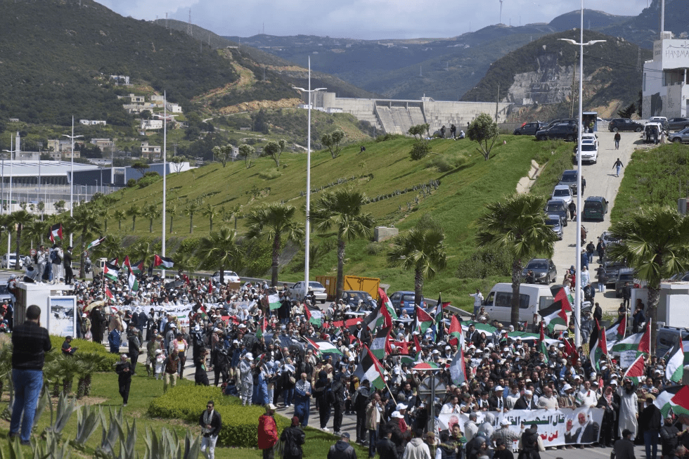 En Tánger, en el norte de Marruecos, miles de personas se manifestaron el sábado por la noche en apoyo de la causa palestina, rechazando las políticas israelíes de desplazamiento y hambruna, informó Al-Jazeera.