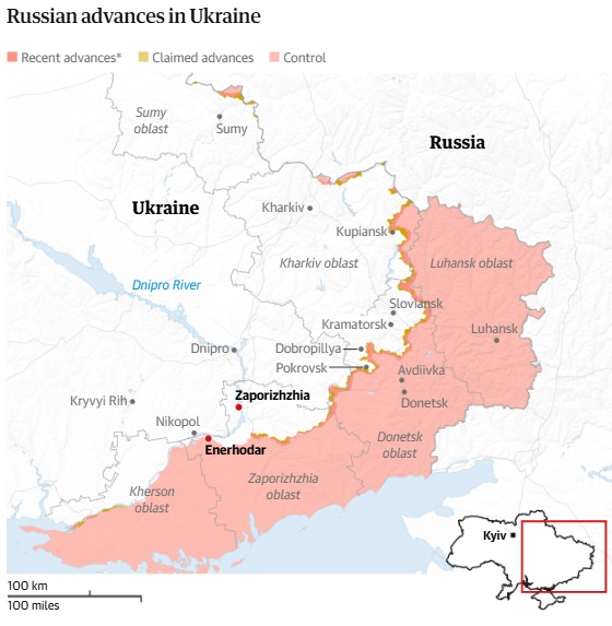 Al parecer, en la agenda de la cumbre entre Putin y Trump en Alaska el viernes hay una propuesta que va incluso más allá: Putin habría lanzado la idea de que Ucrania debería renunciar a las partes de las regiones de Donetsk y Luhansk que todavía controla, posiblemente a cambio de pequeñas partes de las regiones de Kharkiv y Sumy en poder de Rusia y la promesa de un alto el fuego; en esencia, intercambiar tierras ucranianas por otras tierras ucranianas.
