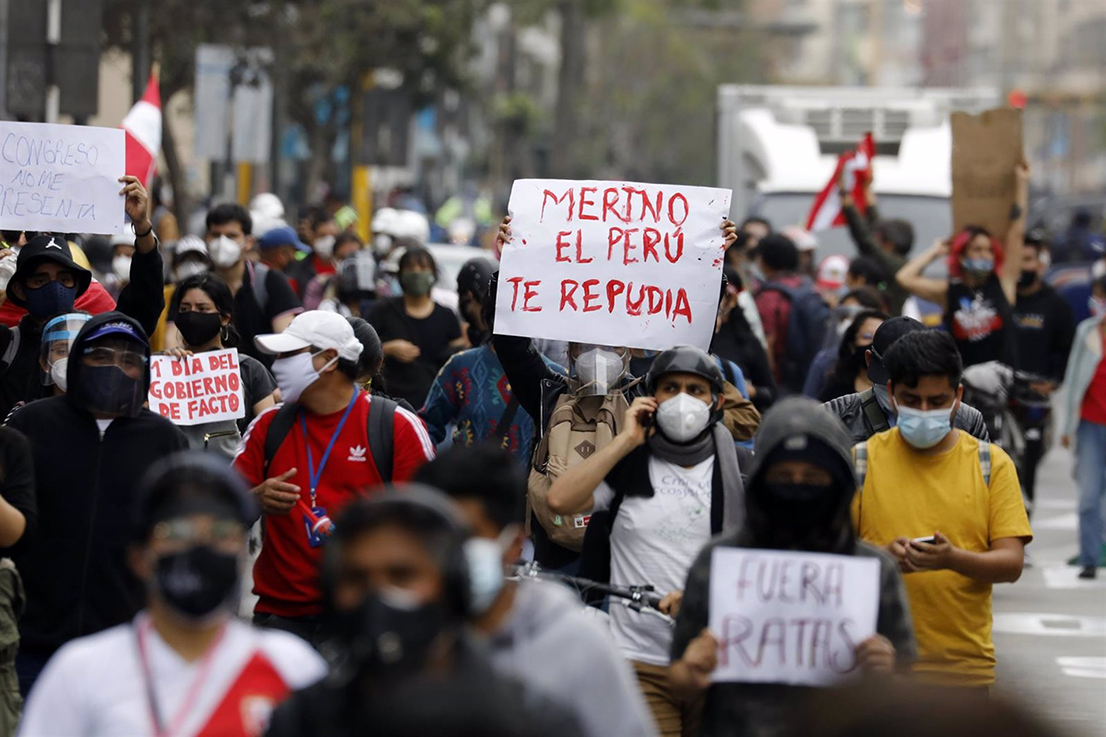 Protestas en Perú por la juramentación de Manuel Merino, figura clave en el juicio político que destituyó a Martín Vizcarra. The Guardian, 10-11-2020/ El jefe del Congreso de Perú asumió la presidencia luego de que su predecesor fuera derrocado controvertidamente en una votación del Congreso el lunes por la noche, lo que provocó acusaciones deSigue leyendo ««Perú: ¿Destitución legal o golpe parlamentario?»»